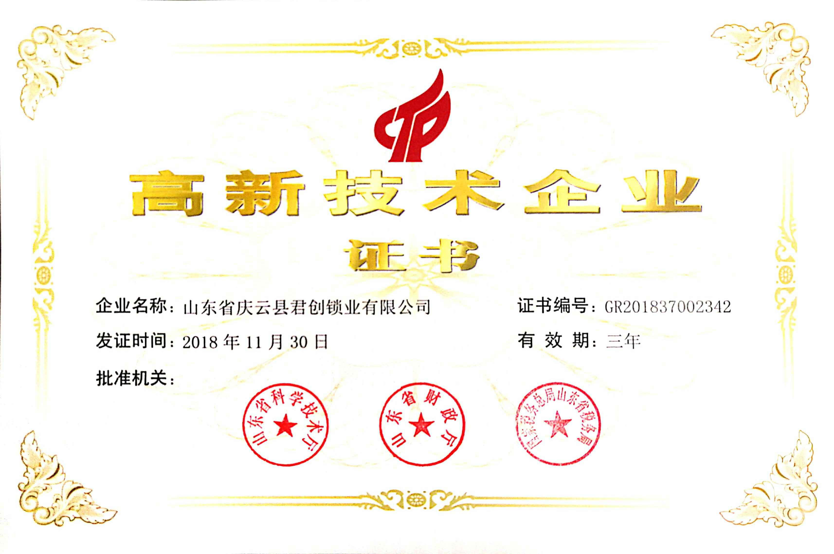 近日,米兰·官方站官网-As MiLan(中国)喜迎佳音,获得了“国家高新技术企业证书”。这是米兰·官方站官网-As MiLan(中国)继获得山东省产品质量奖、德州市信用民营企业、等荣誉后获得的一项新的荣誉。